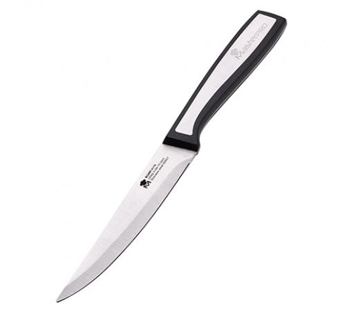 Los cuchillos Sharp de Masterpro son de espiga completa, lo que garantiza su durabilidad. De hecho, la hoja, inserta en el mango, posee el mismo espesor a lo largo de toda la superficie. El diseño ergonómico del mango hace que el tacto sea suave y agradable a la mano. Posee inserciones de acero inoxidable que otorgan a los cuchillos un diseño de líneas puras.