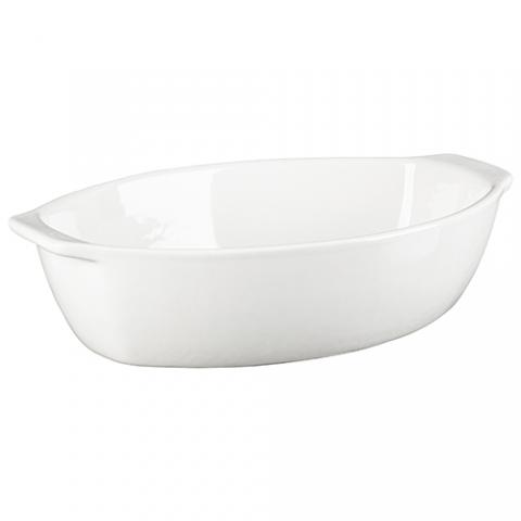 Masterpro Foodies-Bandeja de Horno Ovalada 18x7x28 cm, Gres Blanco, Resistente, Universal, Apta para Microondas, Libre de Tóxicos