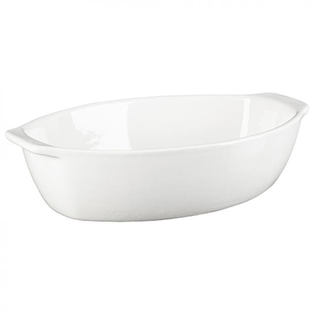 Masterpro Foodies-Bandeja de Horno Ovalada 21x7.5x35 cm, Gres Blanco, Resistente, Universal, Apta para Microondas, Libre de Tóxicos