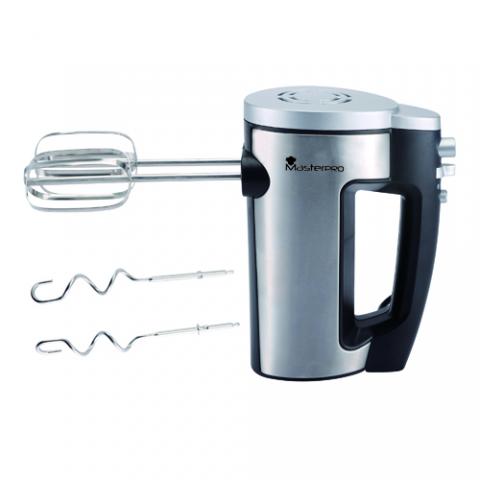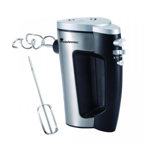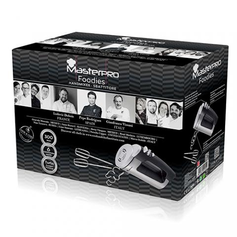 Masterpro Foodies - Batidora de Mano 220-240 v, 300 w, Plástico y Acero Inoxidable, 6 Velocidades + Turbo, Botón de Expulsión con Dispositivo de Seguridad, con Batidores y Ganchos Incluidos