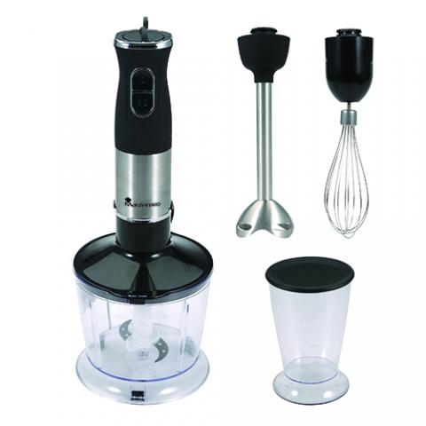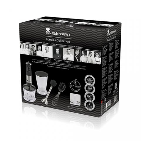Masterpro Foodies - Batidora de mano, 600ml, Cuchillas de Acero Inoxidable, Velocidad Regulable, Agarre Antideslizante, Motor Silencioso, Vaso Extraíble, 300W