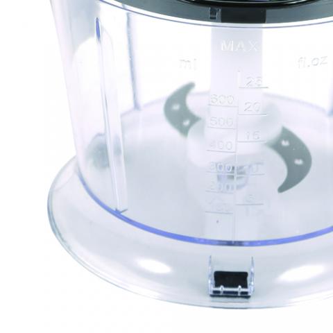 • Esta batidora cuenta con una picadora de 600ml y un vaso batidor con tapa de 500ml de capacidad.