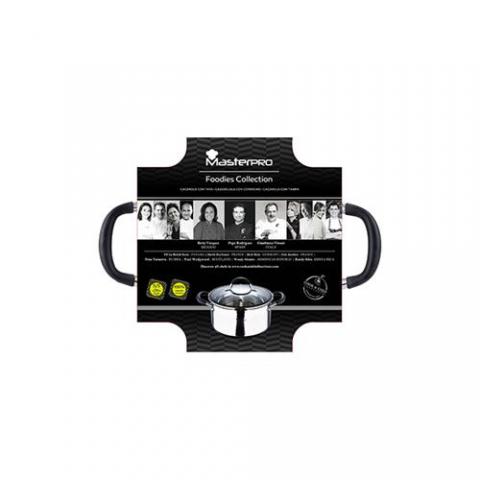 Masterpro Foodies - Cacerola de 24x12 cm, 5 L, Antiadherente, en Acero Inoxidable, con Tapa y con Escala de Medida, Asas Recubiertas de Silicona