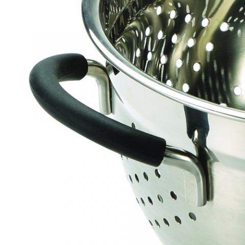 • Cómodo manejo de la pieza: hemos mejorado la experiencia de uso de este colador gracias a la incorcoración de un revestimiento de silicona negra en sus asas y pies. Esto significa que podrás cogerlo y manipularlo fácilmente, además de evitar añazos en tu fregadera.