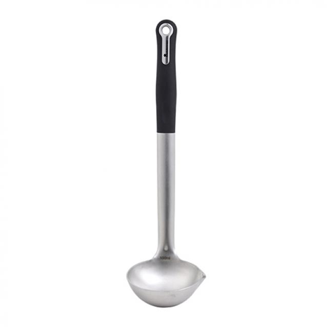 Masterpro Foodies - Cucharón 31x8.5x8 cm, Acero Inoxidable, con Revestimiento Antiadherente y Resistentes al Calor, Mango de silicona, Negro/Gris