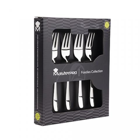 Masterpro Foodies - Juego de 4 Tenedores de Postre, Acero Inoxidable, Acabado brillo, Grosor de 4 mm, Resistentes, Diseño moderno