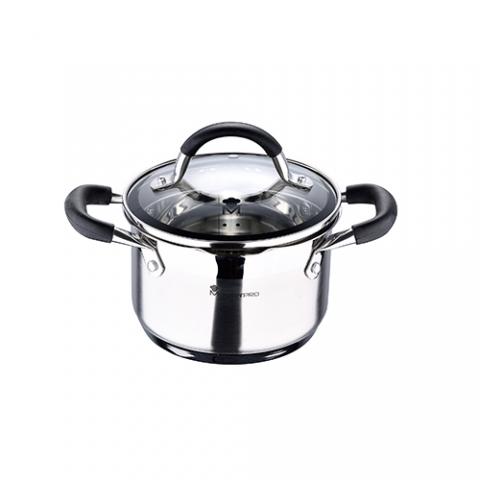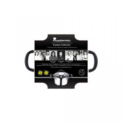 Masterpro Foodies - Olla de 16x10 cm, 1.8 L, Antiadherente, en Acero Inoxidable, con Tapa y Escala de Medida, Asas Recubiertas de Silicona