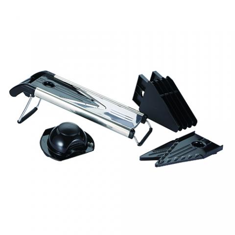 Masterpro Foodies - Picadora de Verduras 3 x 14 x 41 cm ABS, 3 Hojas para Filetear en Diferentes Tamaños: 1.5 mm, 2.5 mm y 3.5 mm, 2 para Desgarrar 3.5 y 7 mm, Patas Antideslizantes, Fácil Limpieza