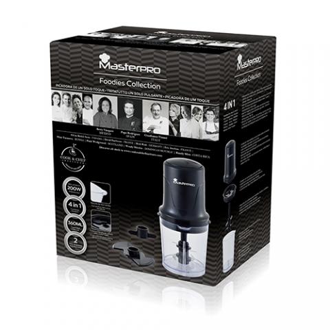 Masterpro Foodies – Picadora eléctrica de 200w,160 x 164 x 257 mm, Cuchilla de Acero inoxidable, con Accesorios para Batir y Mezclar