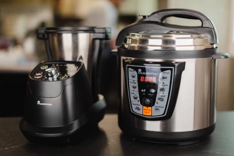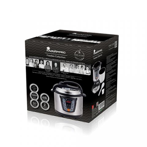 Masterpro Foodies - Robot de Cocina, Olla Programable ,Ollas a Presión Eléctrica, Capacidad 6L, Programable 24h, 1000W, Preserva el Calor, Cubeta 100% Antiadherente, Libre PFOA