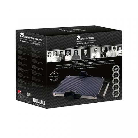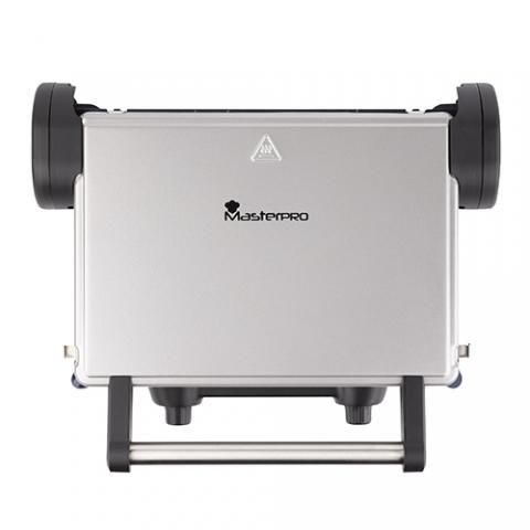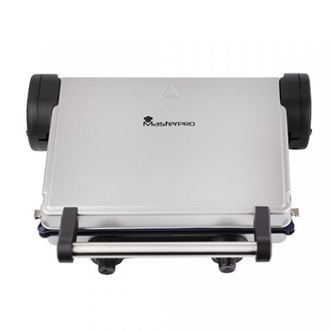 Se trata de una plancha estilo grill para la preparación de recetas de alimentos como sandwiches, tostadas o waffles, entre otros. El diseño con bordes curvos y colores oscuros brinda un toque más profesional a cualquier estilo de cocina. Los materiales de su fabricación son de alta calidad, ofreciendo durabilidad y resistencia por largos periodos de tiempo. Cada placa posee el revestimiento antiadherente Xylan Plus que evita que líquidos u objetos sólidos se peguen en la superficie de ellos.Se puede regular fácilmente la temperatura que reciben las placas, logrando un tostado lento o más rápido según las necesidades del usuario. El sellado perfecto forma parte de sus características más destacadas, gracias a la distribución de la temperatura de forma uniforme.En la base de la tostadora tenemos accesorios de goma que funcionan como deslizantes sobre superficies lisas, confiriéndole mayor movilidad y transporte. Dichas piezas no se desgastan fácilmente con el tiempo, ya que están compuestas de materiales resistentes a la fricción. Esta herramienta de cocina es de peso ligero y fácil de almacenar, ya que se puede guardar en vertical ocupando el mínimo espacio posiblePerteneciente a la colección Foodies de Masterpro, comparte cualidades estéticas y resultados de nivel profesional incluso para los cocineros más atrevidos. Este accesorio destaca, además, por la ergonomía de su diseño y la calidad de desempeño de todas sus funciones, facilitando la preparación de desayunos o cenas entre familia y amigos.