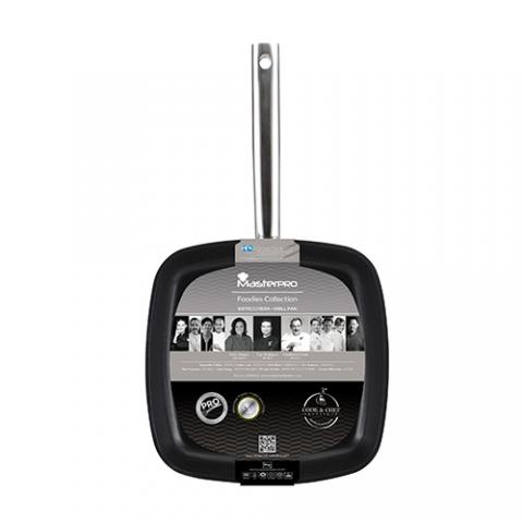 Masterpro Foodies - Sartén Asador de 28x28 cm, Antiadherente Whitford Quantaniumen, Aluminio Forjado, Parrilla Cuadrada, Mango de Acero Inoxidable