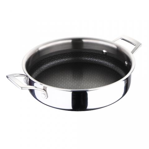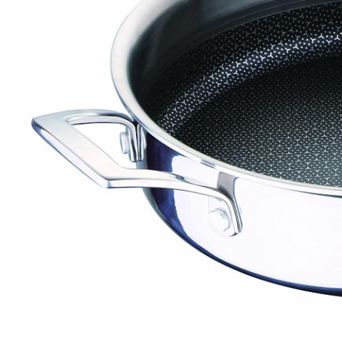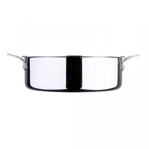 Masterpro Hi-Tech 3 - Cacerola Baja 24 x 6.5 cm, Acero Inoxidable Inducción, Interior Pallatium de Tres Capas, Núcleo Aluminio, Reparte el Calor Uniformemente, Doble Asa, Acabado Brillante
