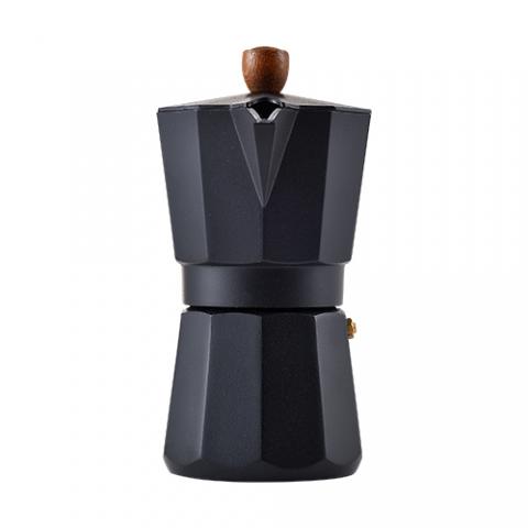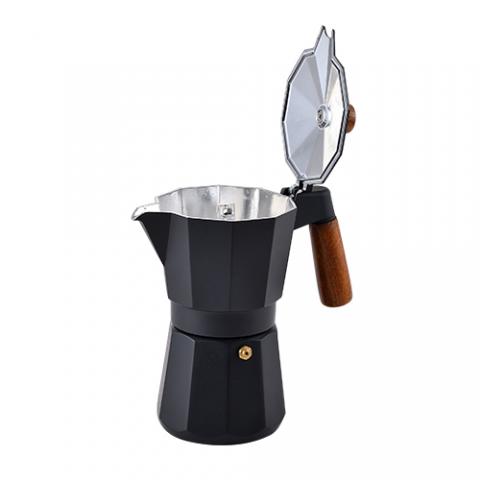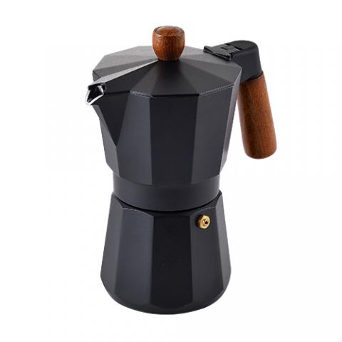 Masterpro Smart - Cafetera Italiana de 6 tazas, Aluminio, Con Tapa con Pintura Negra, Mango y Pomo de Madera de Haya, Apta para inducción, Fácil Limpieza