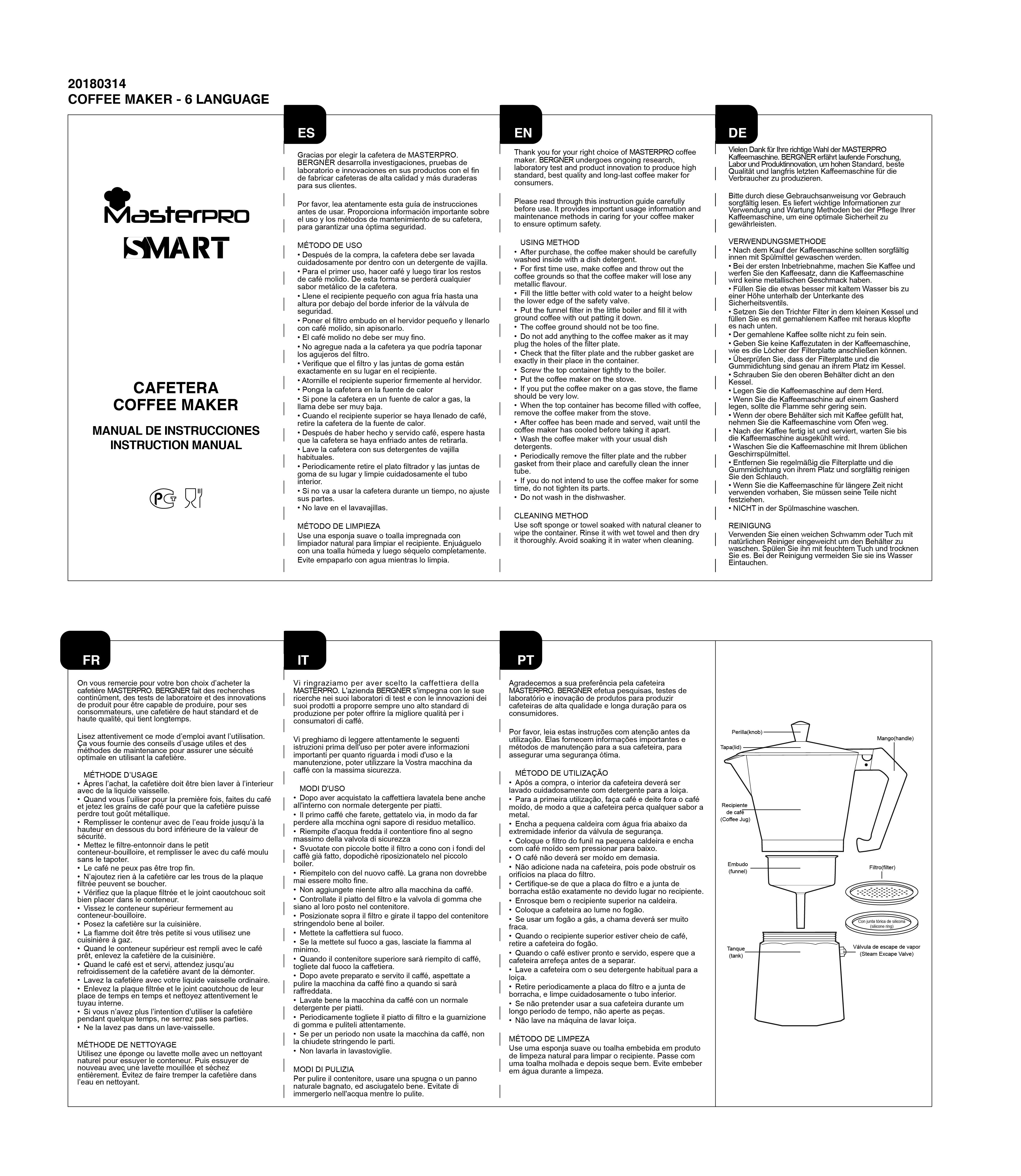•Esta cafetera italiana es fácil de limpiar gracias a su superficie lisa, por lo que evita que las sustancias líquidas se peguen a su estructura. Su tamaño permite que pueda guardarse en cualquier sitio.