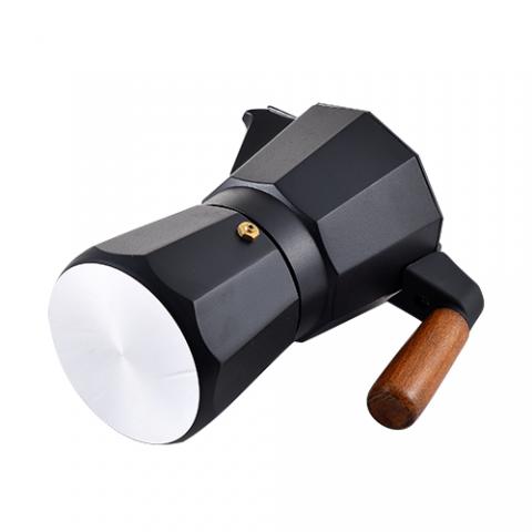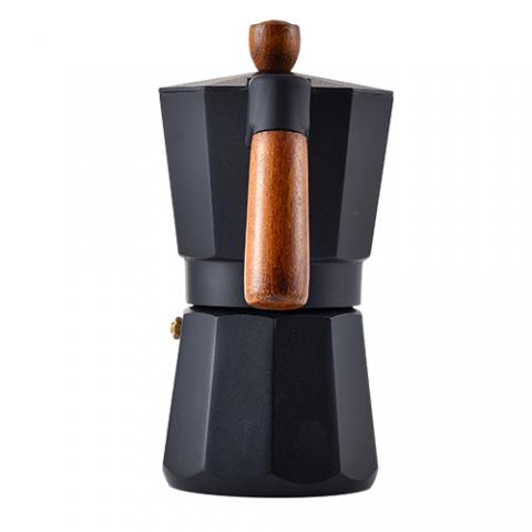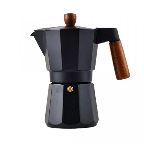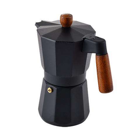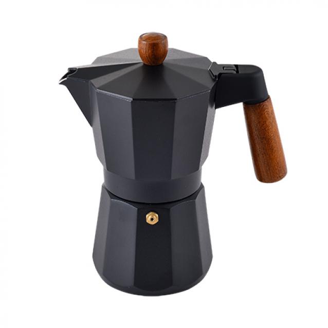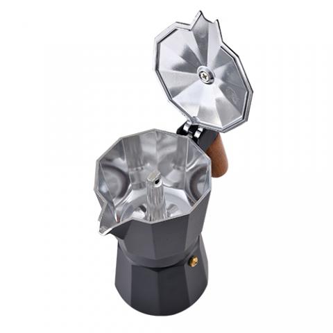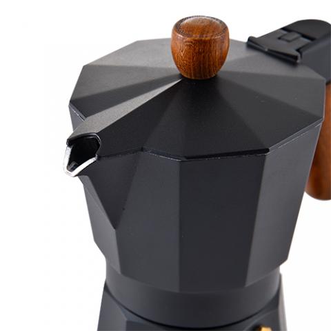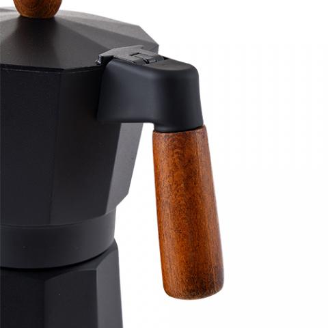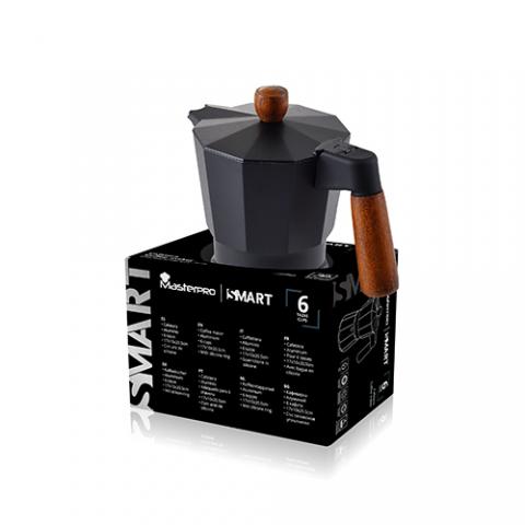 Masterpro Smart - Cafetera Italiana de 6 tazas, Aluminio, Con Tapa con Pintura Negra, Mango y Pomo de Madera de Haya, Apta para inducción, Fácil Limpieza