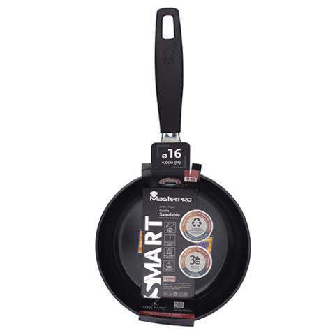 Masterpro Smart - Sartén de 16 cm, Antiadherente Cerámico, Aluminio Forjado, Mango Ergonómico, Apto para todo tipo de cocinas, Libre de Tóxicos, Gris