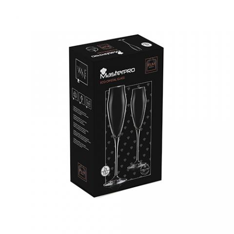 Masterpro Wine Oenology - Juego de 2 Copas Flauta de 18.2 cl de Cristal Ecológico y 100 % Reciclable, Fácil Limpieza, Apta para lavavajillas